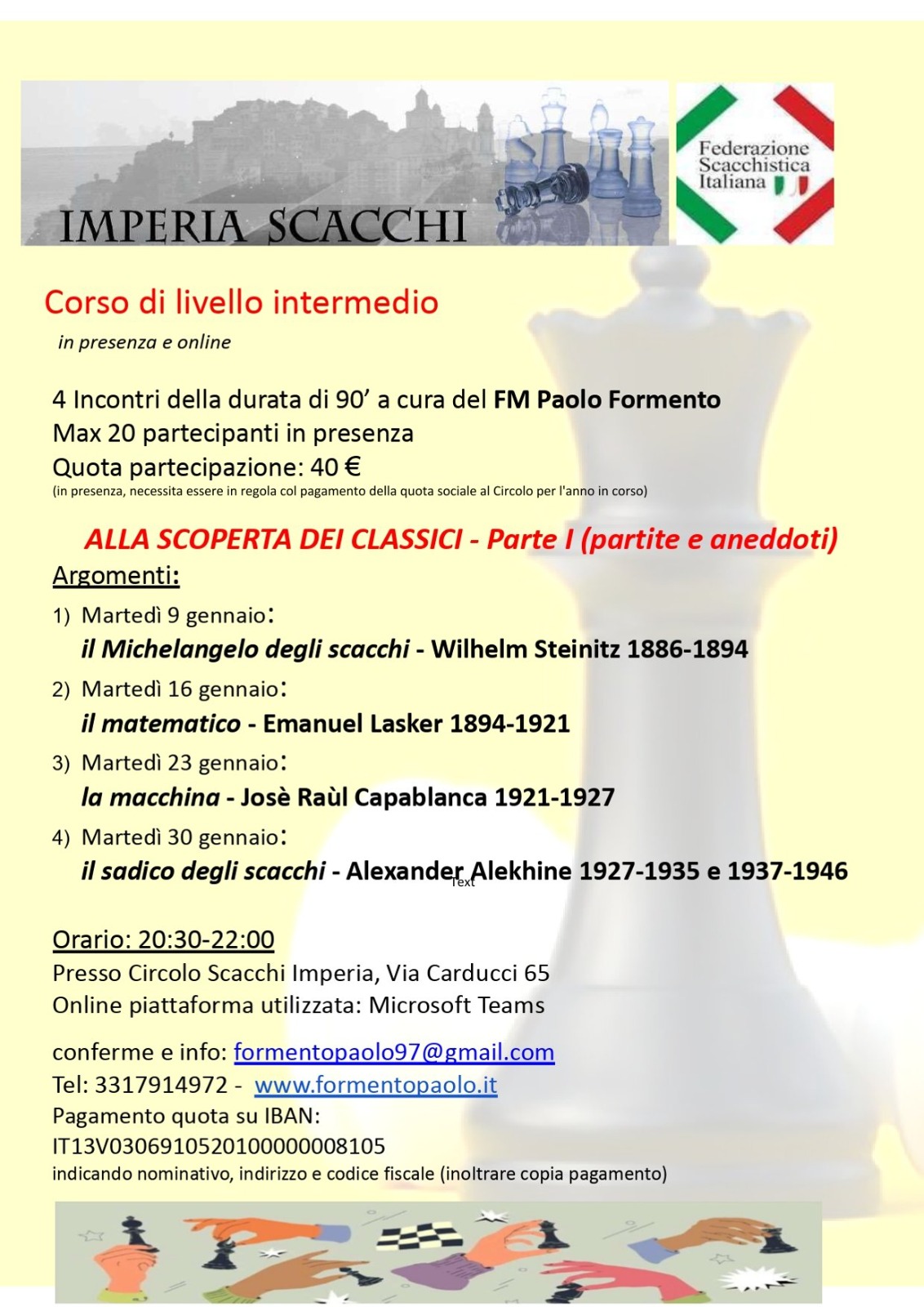 Corso di livello intermedio – Circolo di Imperia e online – 9, 16, 23 e 30 gennaio 2024