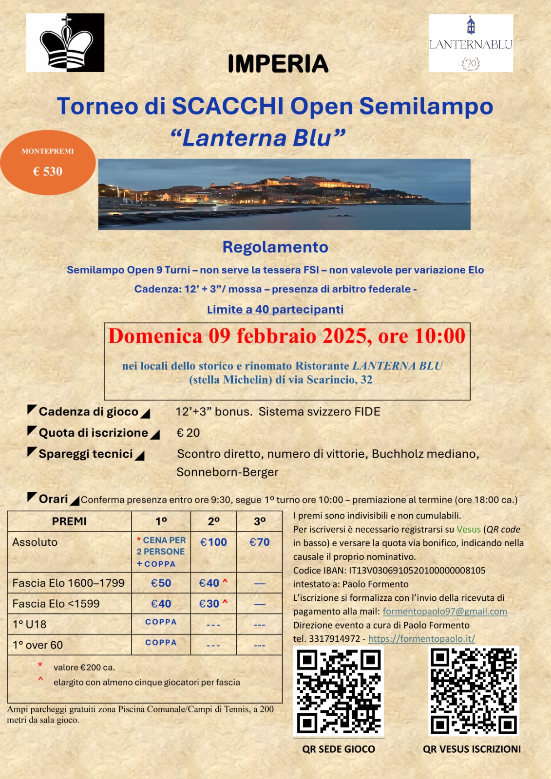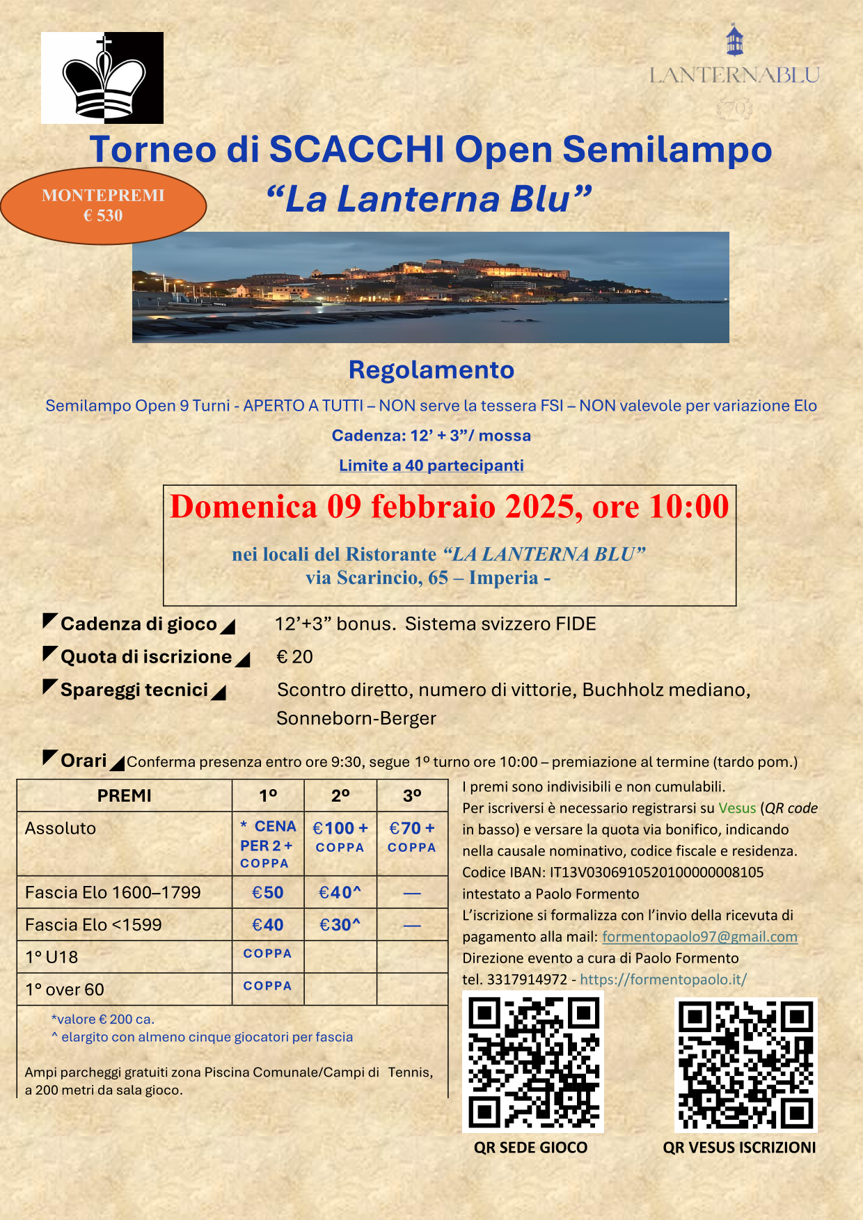 Torneo semilampo – Imperia c/o Ristorante LANTERNA BLU – 9 febbraio 2025
