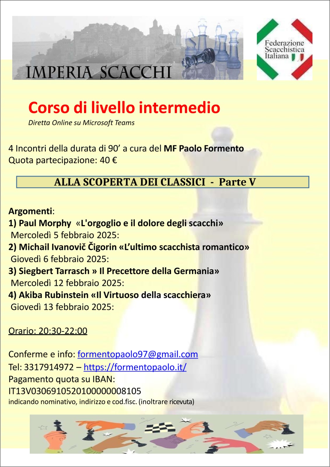 Corso di livello intermedio – Circolo di Imperia, 29 marzo / 19 aprile 2023